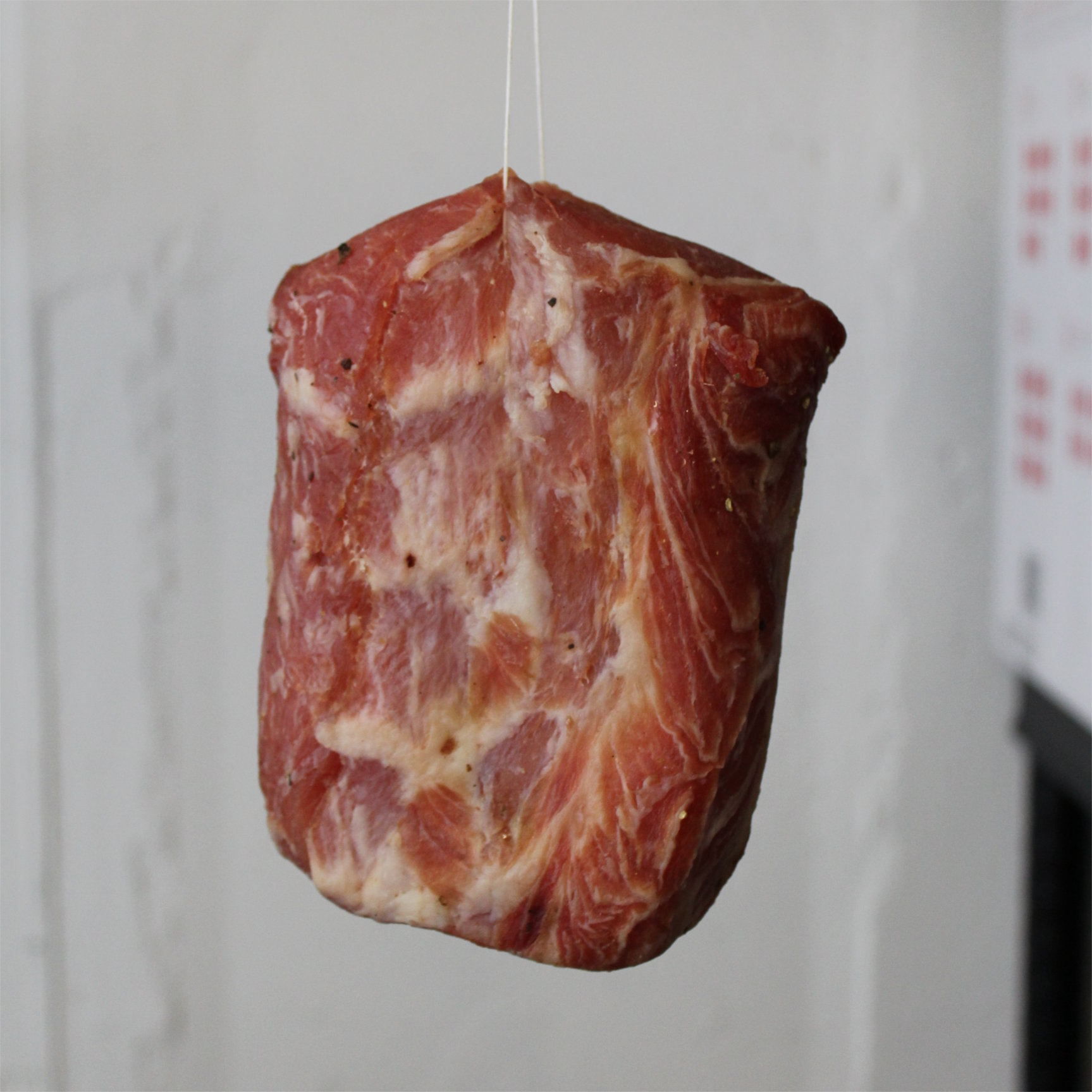 • keine Zugluft herrscht, da die Oberfläche des Schinkenspeck so zu stark austrocknet