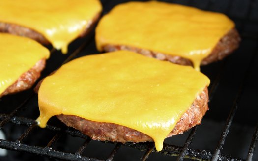 Wenn die Pattys angegrillt sind, legt eine Scheibe Cheddarkäse darauf und lasst sie bei geschlossenem Deckel schmelzen.