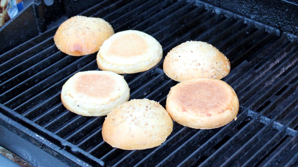 Nachdem die Patties den gewünschten Bräunungsgrad haben, legt ihr sie in den indirekten Bereich und belegt sie mit der gewünschten Menge Gorgonzola und den Walnüssen. Währenddessen könnt ihr die aufgeschnittenen Buns schonmal auf der aufgeschnittenen Seite antoasten.